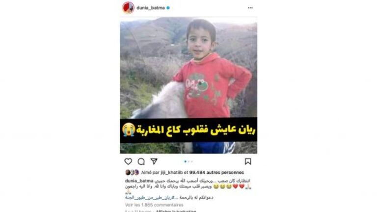ونشرت دنيا عبر ستوري حسابها على الانستغرام، فيديو ظهرت فيه تبكي فرحا بخروج ريان من البئر، ولكنها عادت بعد ذلك ونشرت تدوينة أخرى تنعي فيها هذا الطفل، الذي فارق الحياة رغم صموده لعدة أيام.