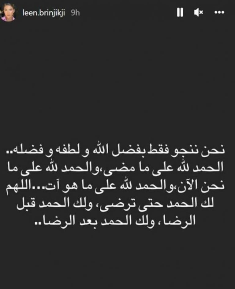 ونشرت أول تعليق على خبر انفصالها عبر خاصية "ستوري" على "انستغرام"، قائلة: "نحن ننجو فقط بفضل الله ولطفه وفضله، الحمدلله على ما مضى، والحمدلله على ما نحن الآن، والحمدلله على ما هو آت، اللهم لك الحمد حتى ترضى ولك الحمد قبل الرضا ولك الحمد بعد الرضا".