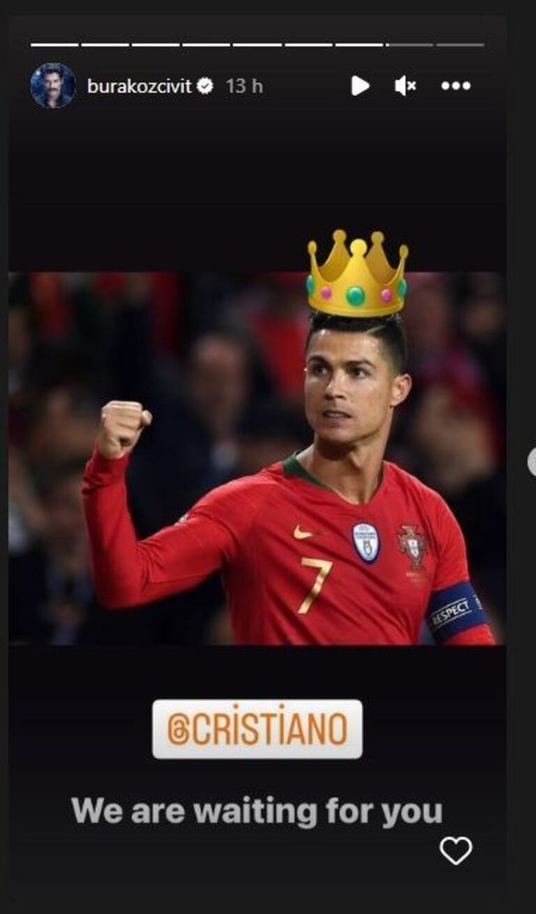 ونشر بوراك، عبر ستوري حسابه على إنستغرام، صورة لنجم كرة القدم كريستيانو رونالدو بالتاج، وعلق عليها قائلا: "نحن في انتظارك".