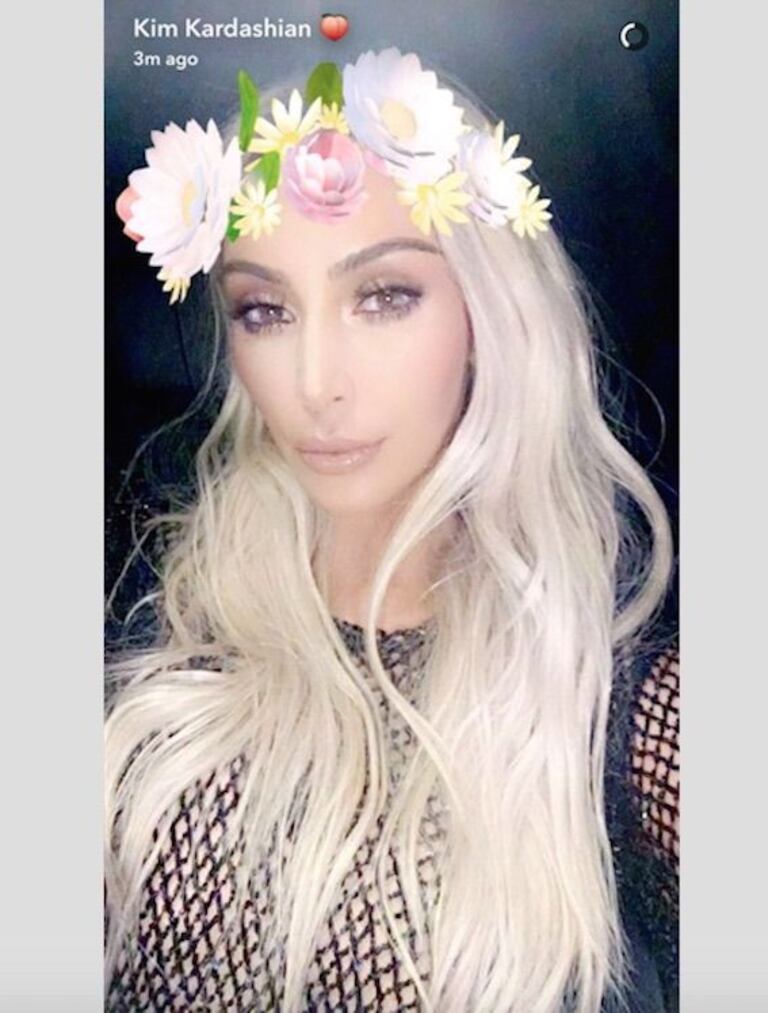 وظهرت كيم خلال تطبيق "سناب شتات" الشهير بإطلالة جديدة، حيث أعادت شعرها الأسود إلى اللون الذهبي، واعتمدت ماكياج صارخ، وعلقت على الصورة التي نشرتها "ماذا تطنون" لكي تحمس متابعيها من كل دول العالم.