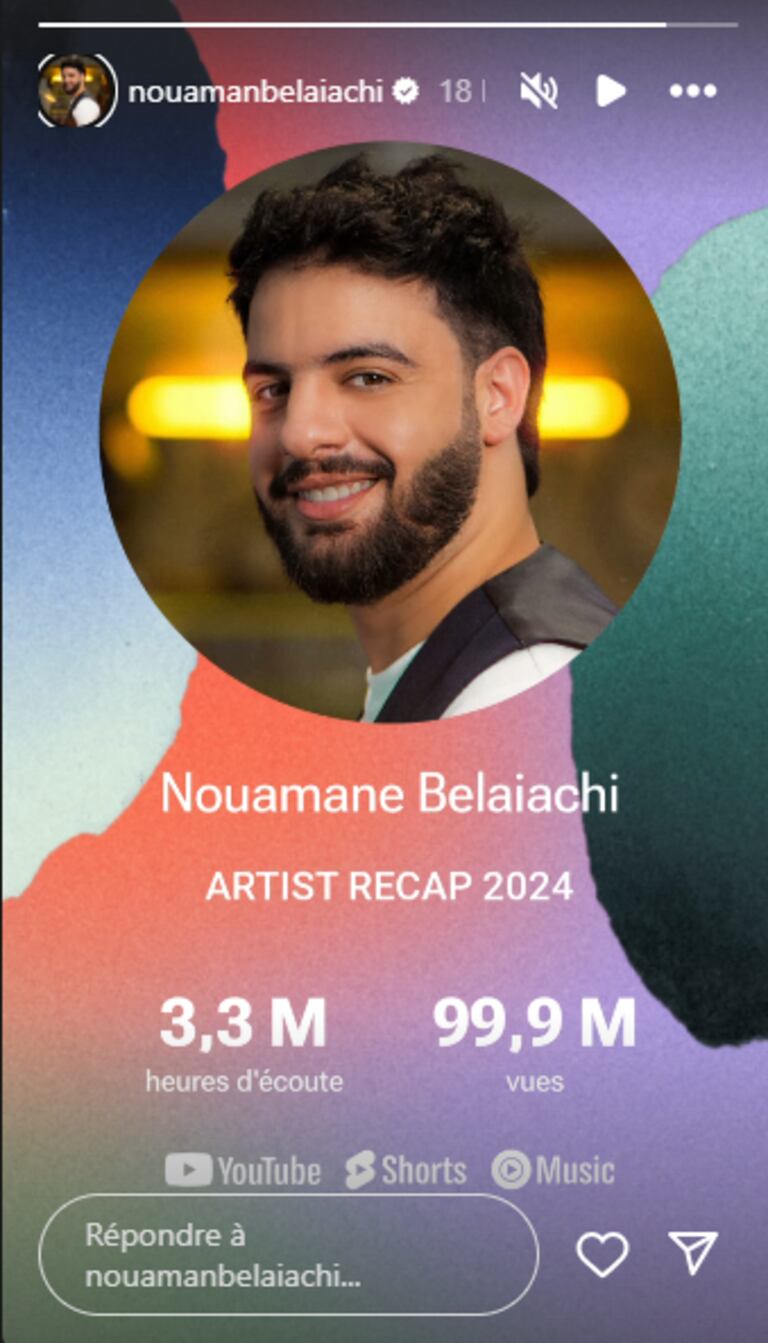 فقد بلغ مجموع مشاهدات أعماله على منصة يوتيوب أكثر من 99.9 مليون مشاهدة، بالإضافة إلى 3.3 مليون ساعة استماع، وفقا لإحصائيات Artist Recap 2024.
