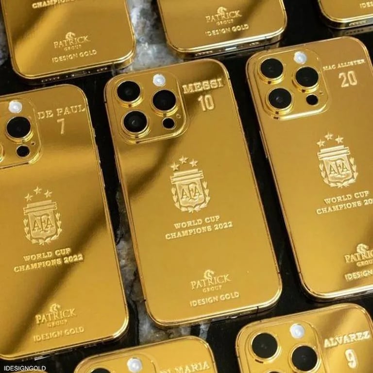وتتميز كل قطعة فاخرة من آيفون بتصميم بسيط من الذهب، عليه شعار منتخب الأرجنتين مع النجوم الثلاثة، واسم اللاعب ورقم قميص المنتخب الوطني، وعبارة « أبطال كأس العالم 2022″.