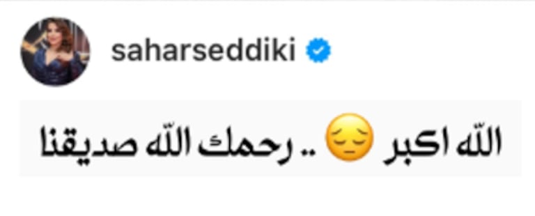 ولم تخف الفنانة سحر الصديقي تأثرها بالخبر، قائلة: « الله أكبر... رحمك الله صديقنا »، كما عبرت الممثلة رباب كويد عن حزنها بالقول: « إنا لله وإنا إليه راجعون، الله يرحمه يا رب ».