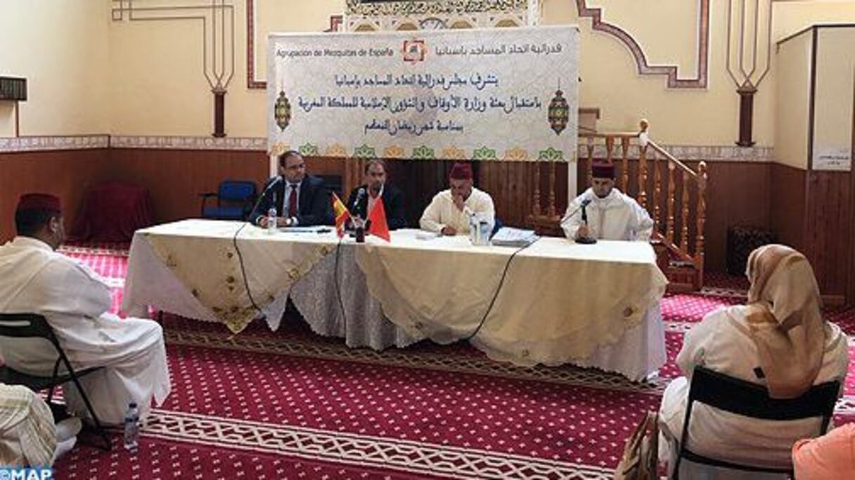 وأضاف أن حضور الأئمة والمرشدات الدينيات المغاربة إلى إسبانيا خلال شهر رمضان الأبرك يروم مساعدة أعضاء الجالية المغربية على التشبث بقيم دينهم الحنيف وتقاليدهم العريقة مشيرا في هذا الصدد إلى المكانة التي تحتلها المملكة في العالم أجمع في ميدان تدبير الحقل الديني سواء من الناحية التنظيمية أو الروحية والاجتماعية.
