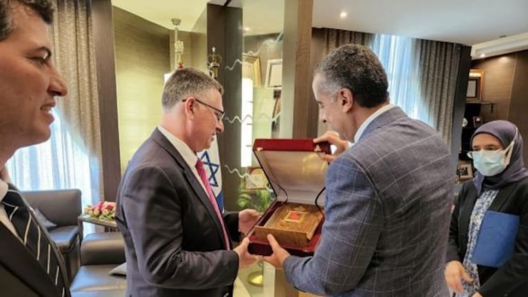 "قابلت للتو المدير العام للأمن الوطني ومراقبة التراب الوطني، عبد اللطيف حموشي. ناقشنا التحديات السياسية والأمنية المشتركة التي تواجه إسرائيل والمغرب”، كتب وزير العدل الإسرائيلي جدعون ساعر في تغريدة على تويتر.