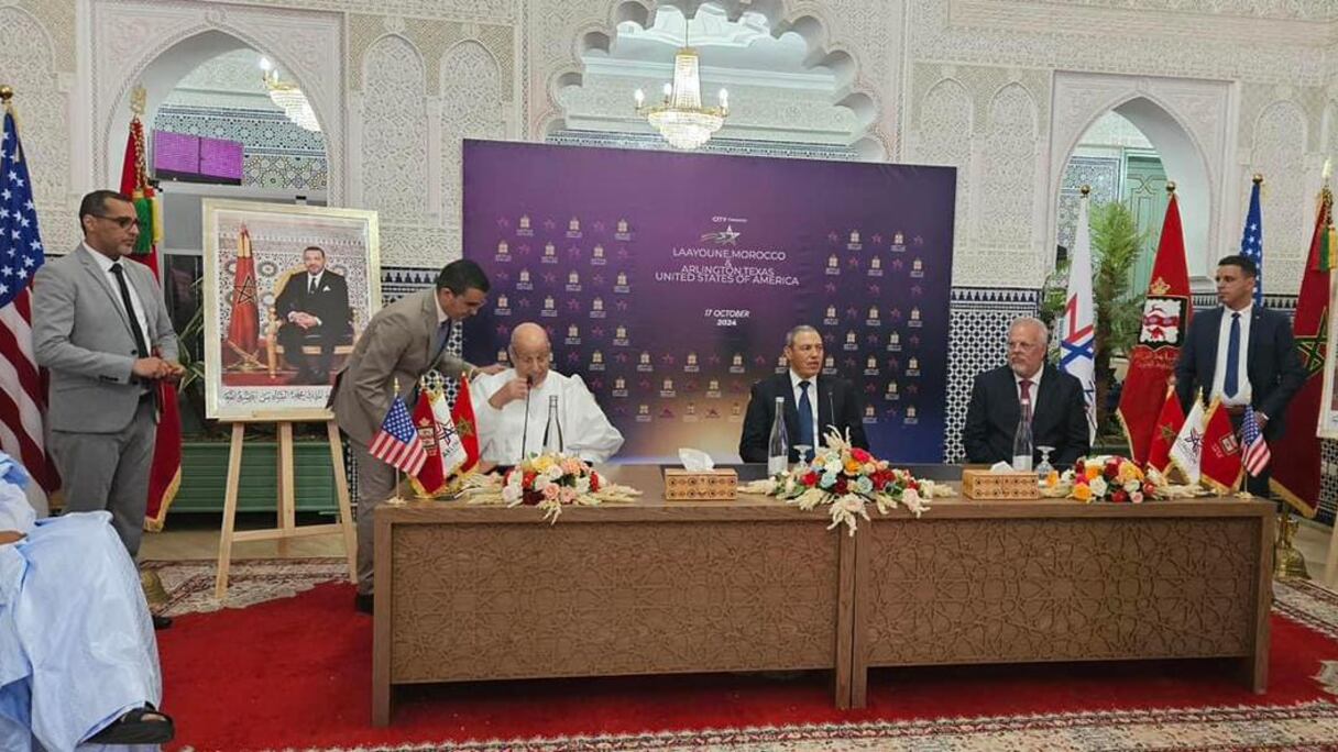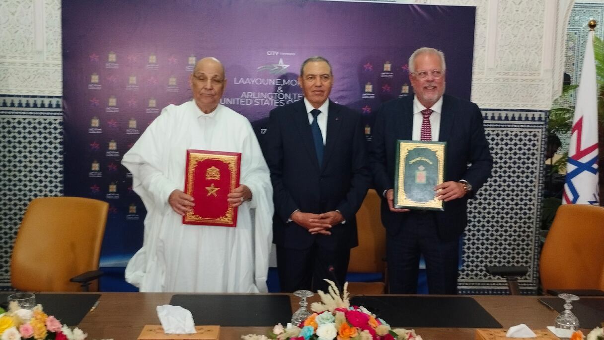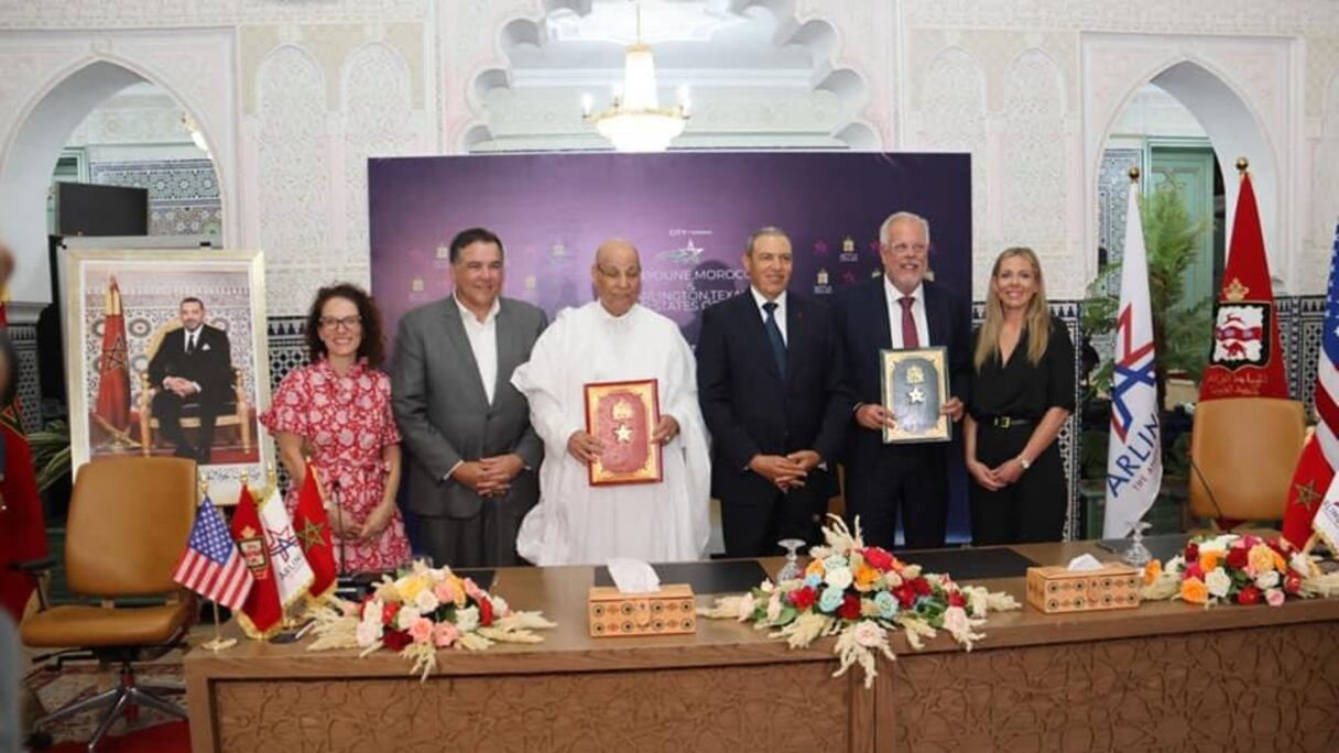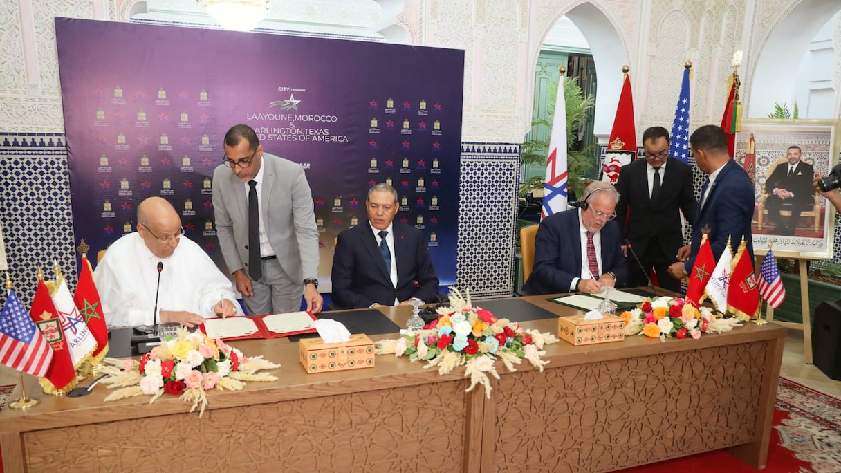 وتم التوقيع على هذه الاتفاقية التي تندرج في إطار التعاون اللامركزي بين المغرب والولايات المتحدة، من قبل رئيس المجلس الجماعي لمدينة العيون، مولاي حمدي ولد الرشيد وعمدة مدينة أرلينغتون، جيم روس، بمقر جماعة العيون، بحضور والي جهة العيون الساقية الحمراء، عامل إقليم العيون، عبد السلام بكرات، ورئيس مجلس الجهة سيدي حمدي ولد الرشيد وعمدة مدينة كولومبوس (أوهايو) أندرو جينثر، الذي يشغل أيضا منصب رئيس مؤتمر عمداء مدن الولايات المتحدة، بالإضافة إلى عدد من المنتخبين المحليين.