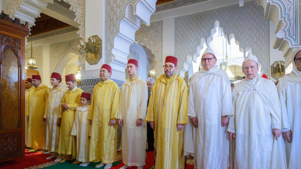إثر ذلك، غادر الملك المسجد عائدا إلى القصر الملكي وسط هتافات المواطنات والمواطنين الذين حجوا بكثافة، في هذا اليوم الأغر، للتعبير عن خالص متمنياتهم بموفور الصحة والعافية للملك وتجديد التأكيد على ارتباطهم الوثيق بشخص جلالته وبالعرش العلوي المجيد، بينما كانت طلقات المدفعية تدوي تعبيرا عن البهجة بحلول المناسبة السعيدة.