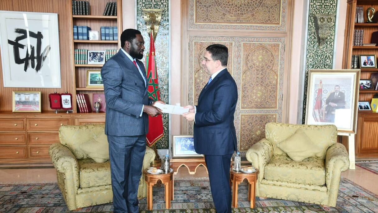 Nasser Bourita recevant son homologue gambien , Mamadou Tangara, le 12 décembre 2023 à Rabat.