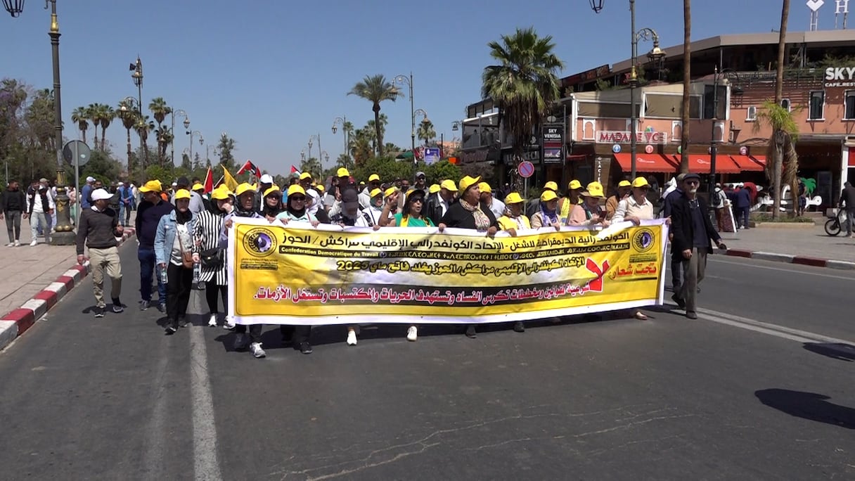 وتميزت تظاهرات عيد العمال بمراكش بحضور قوي لمختلف فئات الشغيلة، من العاملين في القطاعين العام والخاص، والمتقاعدين، والشباب، والتنظيمات النسائية، في تعبير جماعي عن «الغضب والرفض لسياسات الحكومة»، والمطالبة الفورية بـ«الاستجابة للملف المطلبي للنقابات».