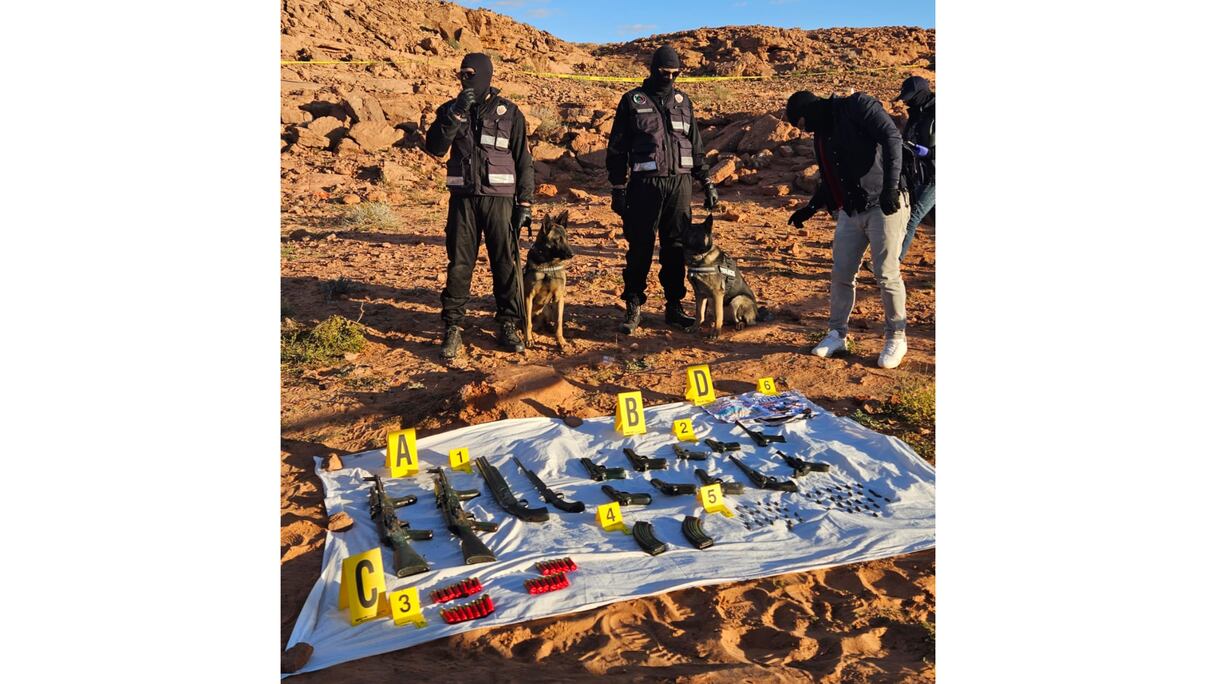 وقد مكنت عمليات التفتيش والتمشيط، التي استغرقت أكثر من ثلاث ساعات تقريبا، من العثور على شحنة من الأسلحة والذخيرة النارية مدفونة في مكان منزو أسفل المرتفع الصخري، كانت ملفوفة في أكياس بلاستيكية وجرائد ورقية منشورة بدولة مالي، من بينها أسبوعيات ورقية صادرة بتاريخ 27 يناير 2025.
