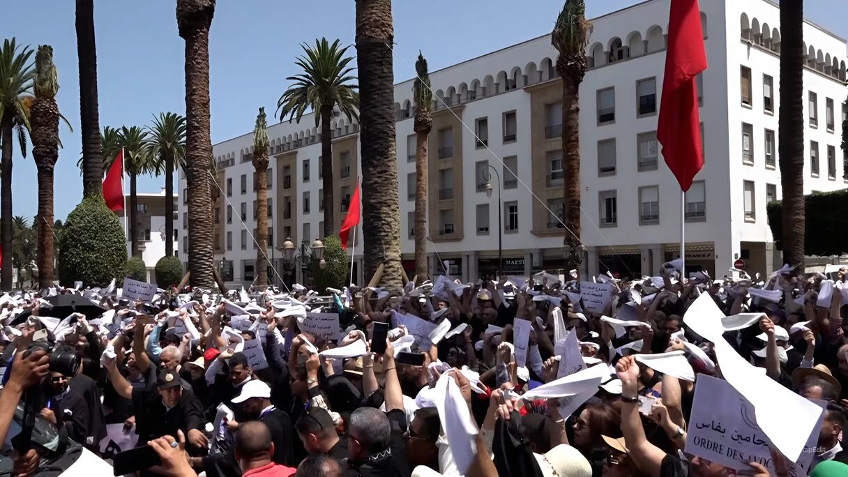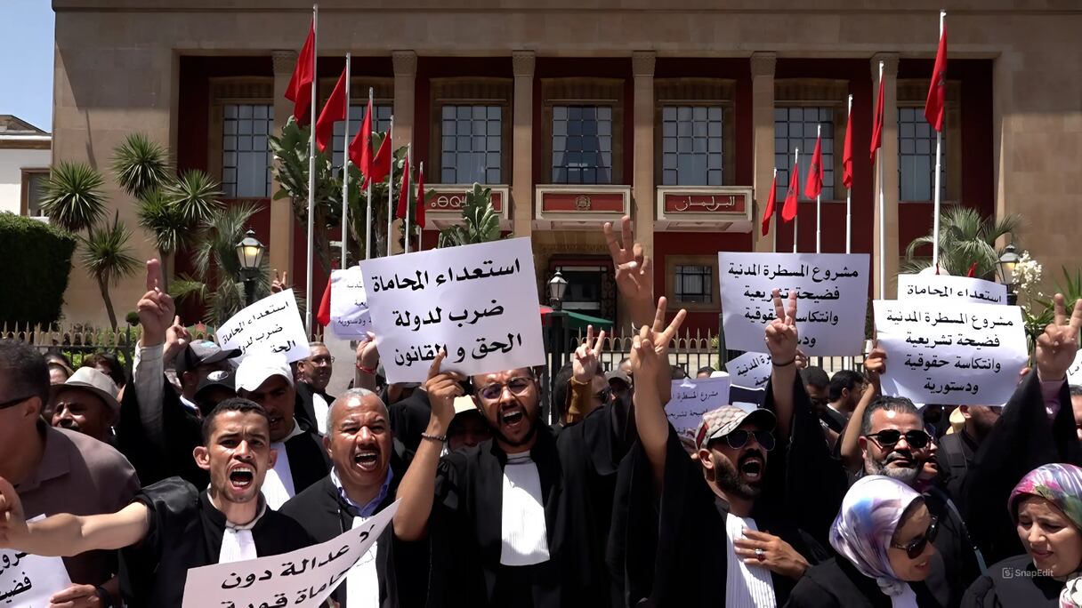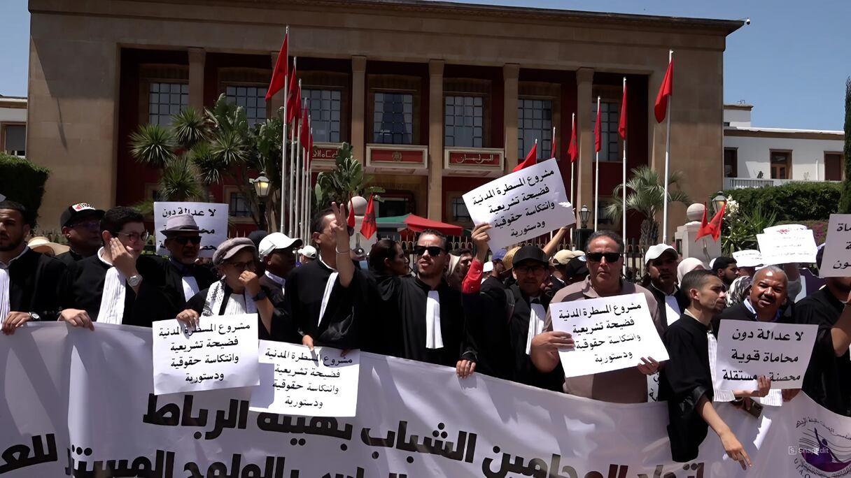 أعرب نحو ألف محام، اليوم السبت 27 يوليوز، خلال وقفة احتجاجية سلمية أمام مبنى البرلمان بالرباط، عن رفضهم لمشروع قانون المسطرة المدنية الذي اعتمده نواب المجلس قبل ثلاثة أيام.