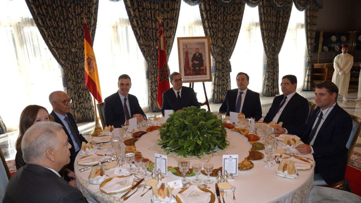 وحضر هذه المأدبة، على الخصوص، وزير الشؤون الخارجية الإسباني، خوسي مانويل ألباريس، وباقي أعضاء الوفد المرافق لبيدرو سانشيز، ورئيس مجلس النواب، راشيد الطالبي العلمي، ووزير الداخلية، عبد الوافي لفتيت، ووزير الشؤون الخارجية والتعاون الإفريقي والمغاربة المقيمين بالخارج، ناصر بوريطة، وسفيرة المغرب بإسبانيا، كريمة بنيعيش.