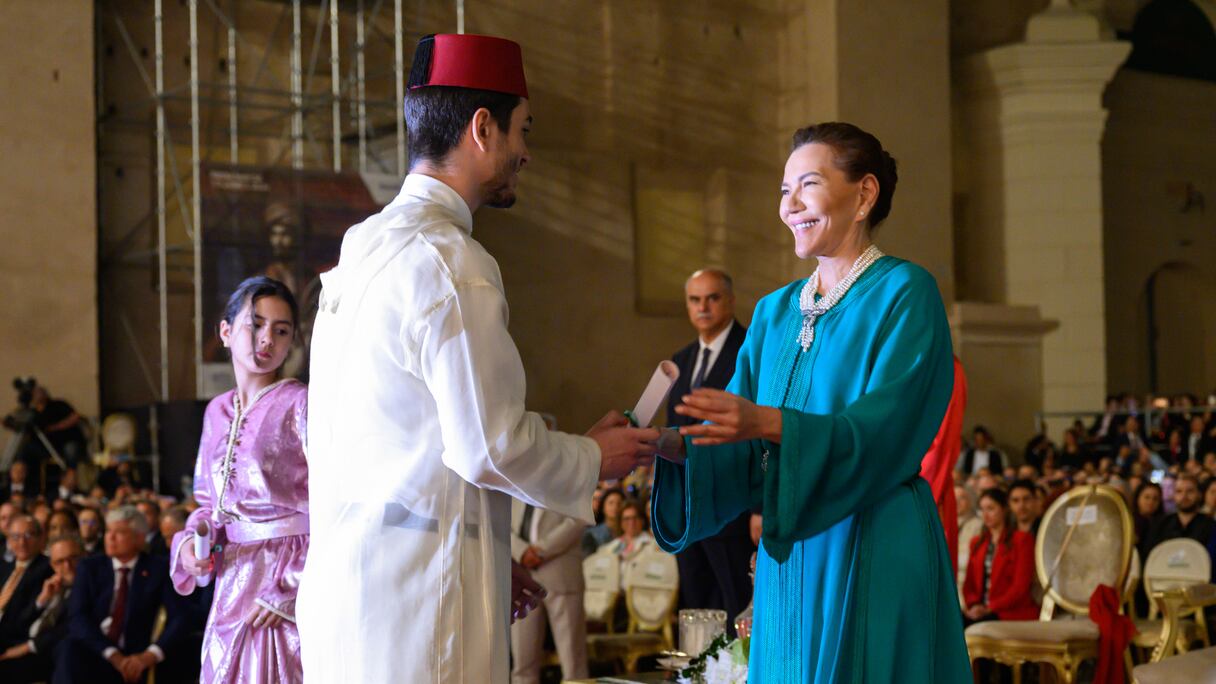 وفي ختام هذا الحفل الافتتاحي، أشرفت صاحبة السمو الملكي الأميرة للا حسناء على تسليم « جائزة المواهب الشابة - روح فاس » لخريجي المعهد الموسيقي بفاس، المنظمة بشراكة مع مؤسسة « روح فاس ». ويتعلق الأمر بجوائز الكمان والقانون الممنوحة لخديجة عميري، وعمر بن حيون صدفي، وياسر تجموعتي، ومريم شكرادة. إثر ذلك، أخذت للأميرة للا حسناء صورة تذكارية مع الفنانين. وكانت الأميرة للا حسناء قد استعرضت لدى وصولها إلى الموقع التاريخي لـ « باب المكينة » تشكيلة من القوات المساعدة التي أدت التحية، قبل أن يتقدم للسلام على سموها وزيرة السياحة والصناعة التقليدية والاقتصاد الاجتماعي والتضامني، فاطمة الزهراء عمور، ووزير الشباب والثقافة والتواصل، محمد المهدي بنسعيد، وسفير سويسرا بالمغرب، غيوم شورير، وسفير إيطاليا بالمغرب، أرماندو باروكو، وكذا الوزير المستشار القائم بالأعمال بسفارة اسبانيا بالمغرب، بورخا مونتسينو.