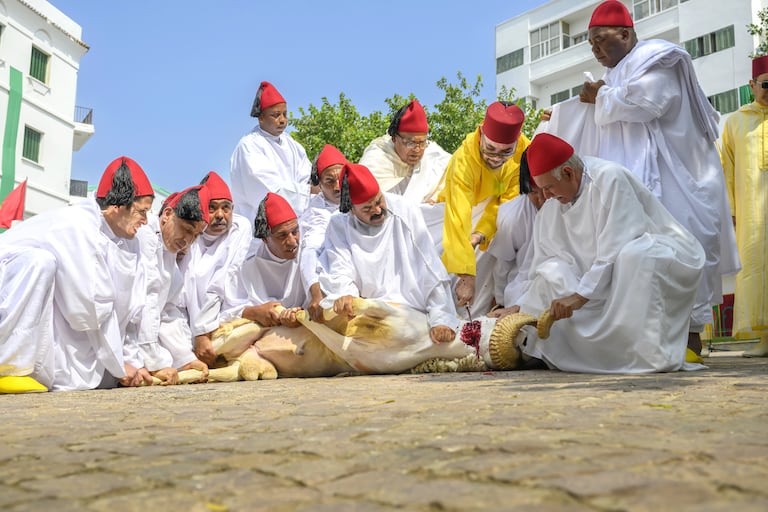 وبعد صلاة عيد الأضحى، قام الملك محمد السادس بنحر أضحية العيد، اقتداء بسنة جده المصطفى صلى الله عليه وسلم، فيما قام الإمام بنحر الأضحية الثانية.