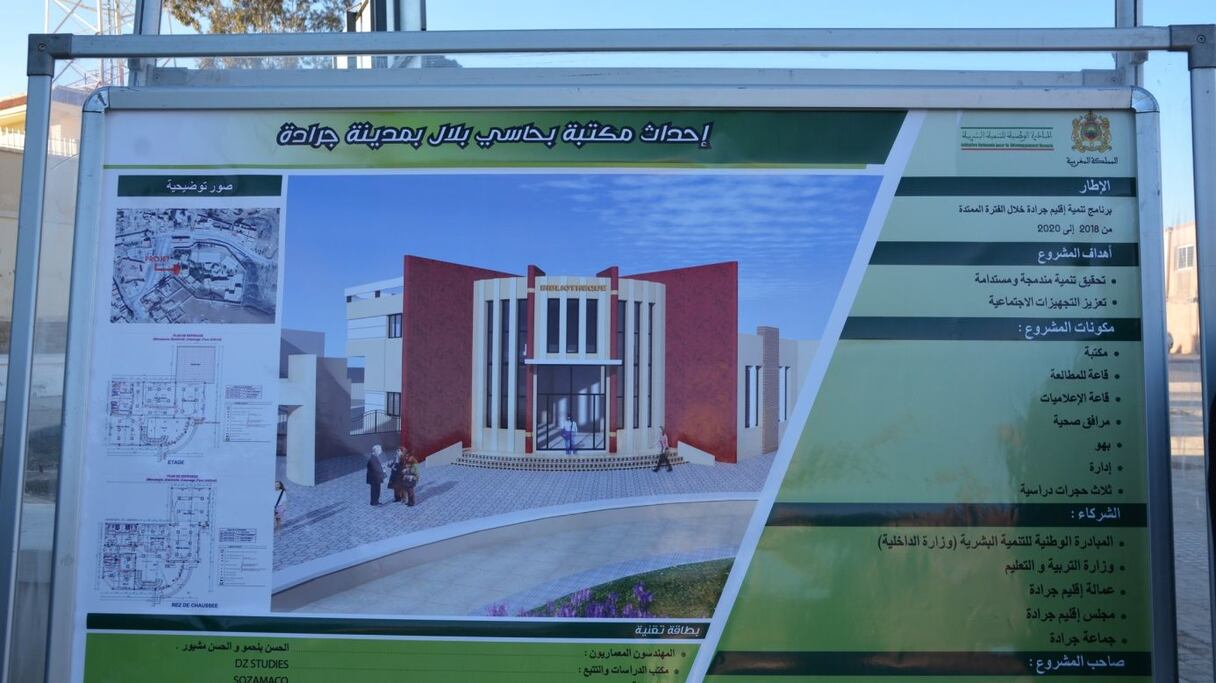 وقام الوفد بزيارة ورش أشغال مشروع بناء مكتبة لدعم القراءة بالثانوية الإعدادية "ابن الهيثم" بمدينة جرادة، المندرج في إطار برنامج تنمية إقليم جرادة برسم الفترة 2018-2020، والذي يتم إنجازه بغلاف مالي قدره 3 مليون درهم بشراكة بين وزارة التربية الوطنية، والمبادرة الوطنية للتنمية البشرية، عمالة ومجلس إقليم جرادة، وذلك بهدف تعزيز البنيات التعليمية والتشجيع على القراءة.