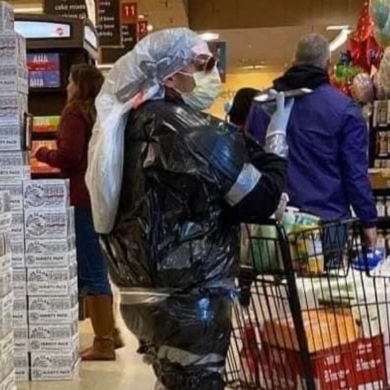 وفيما يلي نستعرض لكم مجموعة من الصور الملتقطة حول العالم لأشخاص خرجوا للتسوق بثياب غريبة "تُغنيهم" عن استعمال الكمامات الطبية: