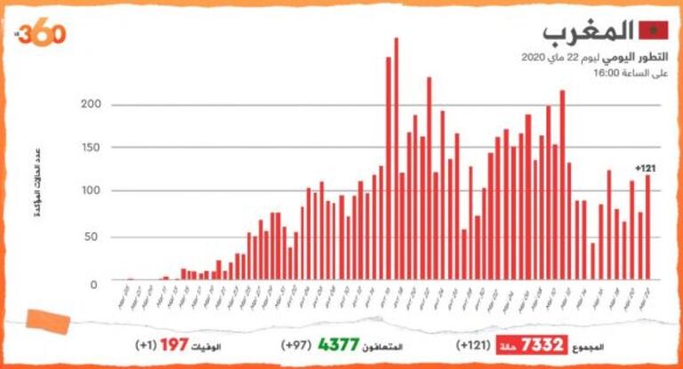 المزيد من المعطيات حول جائحة كورونا بالمغرب تجدونها في موقع Le360 التفاعلي: https://m.le360.ma/covidmaroc/ar/
