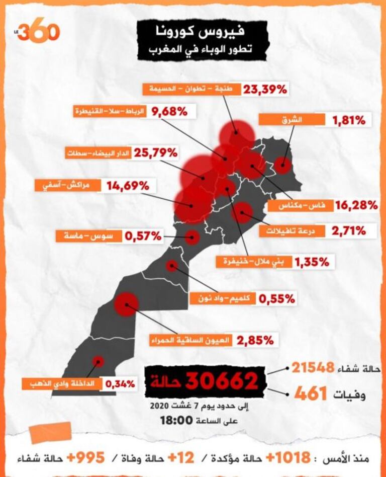 المزيد من المعطيات حول جائحة كورونا بالمغرب تجدونها في موقع Le360 التفاعلي: https://m.le360.ma/covidmaroc/ar/