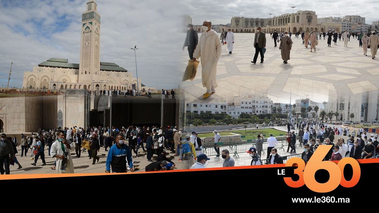 وتوافد مئات المصلين على مسجد الحسن الثاني الذي يعتبر معلمة ومفخرة لكل البيضاويين، حيث مرت صلاة الجمعة في أجواء روحانية وسط احترام تام للتدابير الوقائية من تباعد اجتماعي وارتداء للكمامة وتعقيم للأيدي، إذ التزم كل مصلي بإحضار السجادة الخاصة به والكيس الخاص بوضع الأحذية.