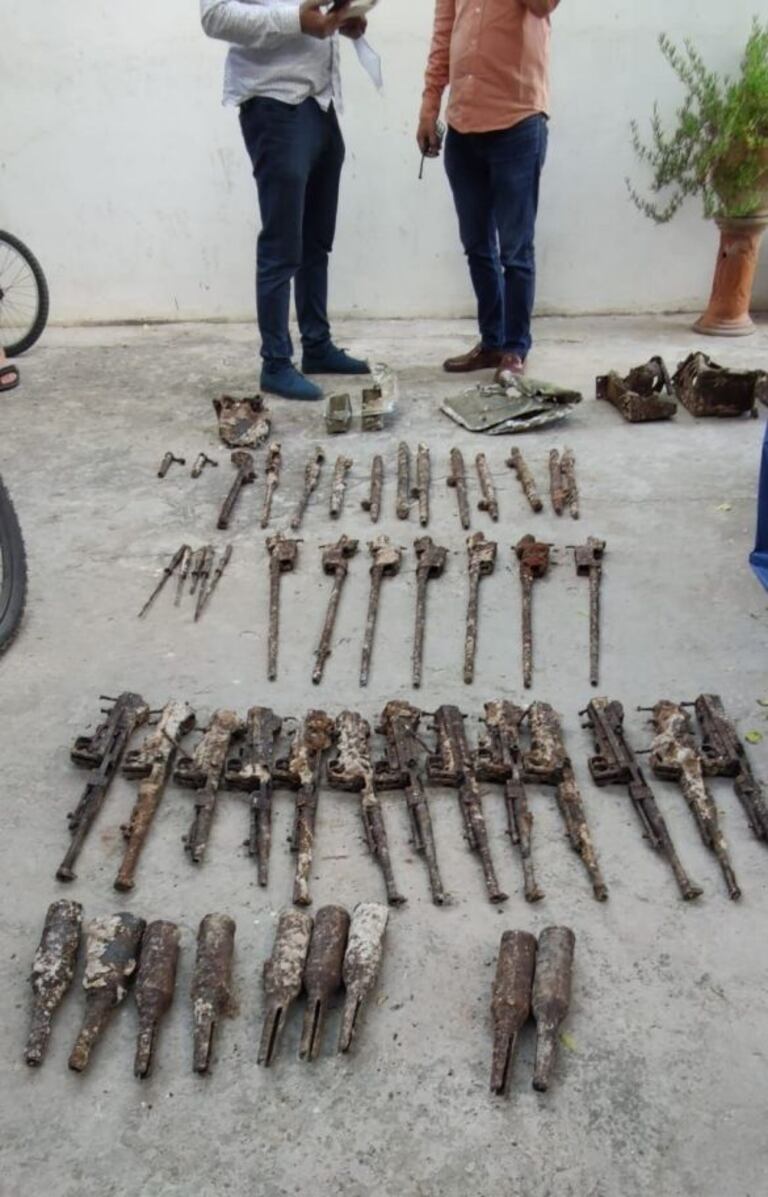 تداول بعض الأساتذة بثانوية ليوطي صورة عبر مجموعة "واتساب" تظهر فيها مجموعة من الأسلحة النارية القديمة قيل إنه تم العثور عليها خلال أعمال حفر داخل المدرسة.
