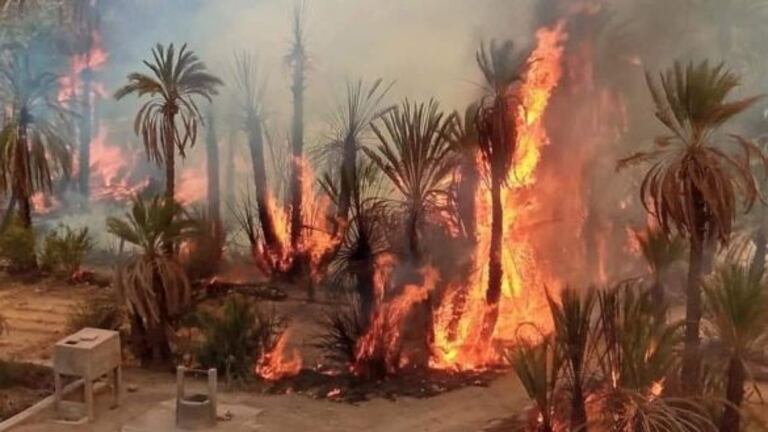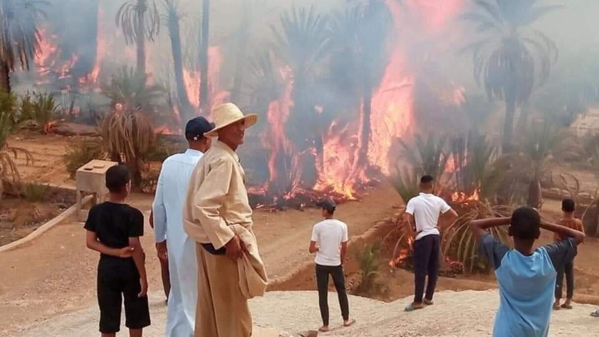 وأفادت مصادر Le360 أن النيران شبت فجأة في نخيل الواحة متسببة في خسائر مادية فادحة في حين لم تسجل أية إصابات في الأرواح.