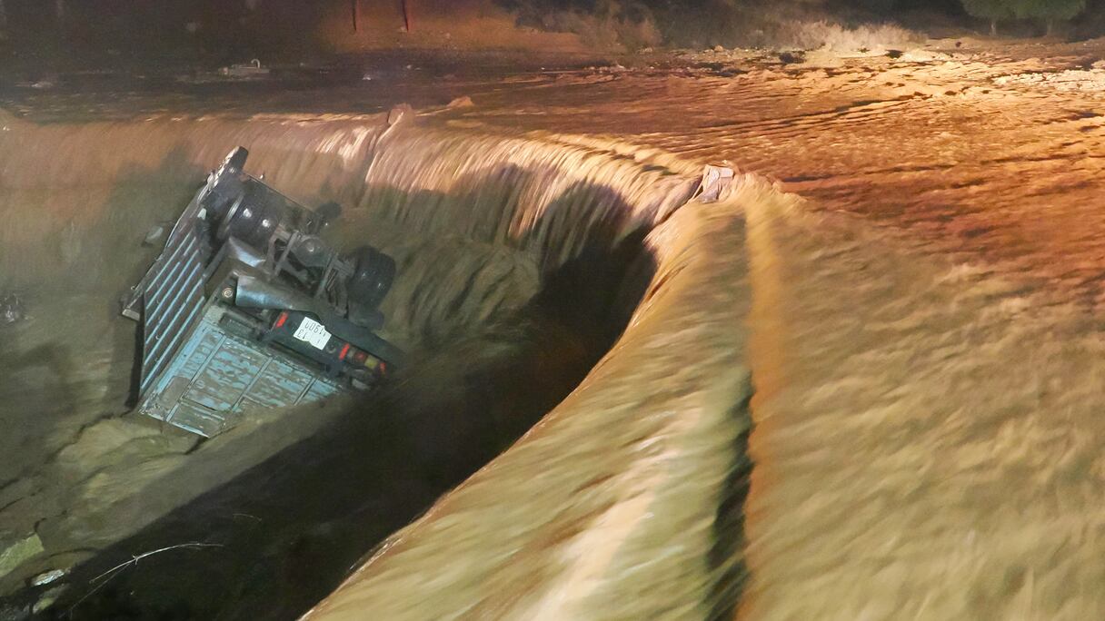 سيول قوية جرفت شاحنة وتسببت في انقلابيها بضواحي أيت عتاب بإقيم أزيلال