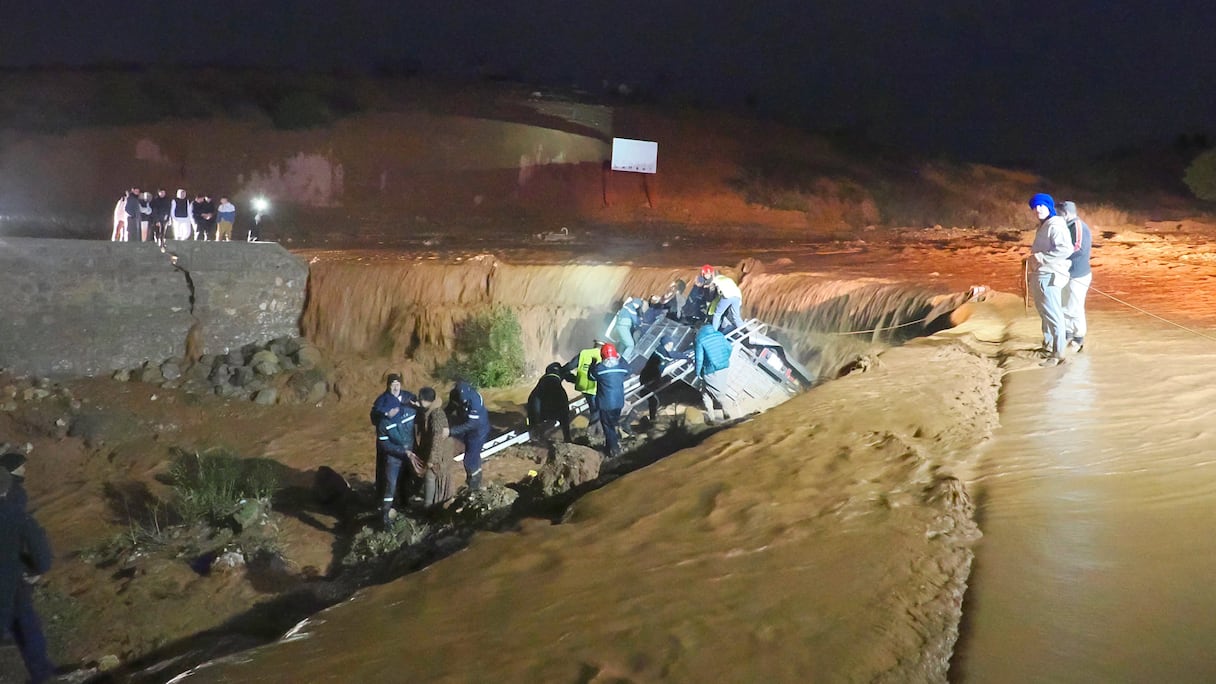 وهرع عدد من السكان والسائقين الذين أخبروا السلطات المحلية وقائد المنطقة الذي ربط الاتصال بعناصر الوقاية المدنية وعناصر الدرك الملكي، التي انتقلت إلى عين المكان بشكل عاجل لتتمكن بعد فترة وجيزة من إنقاذ الشخص الضحية وزوجته حيث جرى إخراجها من وسط الشاحنة التي غمرتها السيول سالمين.