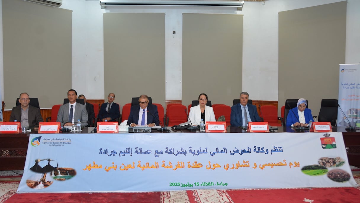 وأوضحت مديرة وكالة الحوض المائي لملوية، أن الفرشة المائية تؤدي دوراً استراتيجياً بإنتاجية قد تصل إلى 200 لتر في الثانية، مما يستدعي إطاراً تعاقدياً لحمايتها وضمان استدامتها، مشيرة إلى أن الوكالة بصدد مناقشة عقدة تدبير تشاركي خاصة بفرشة عين بني مطهر مع مختلف الشركاء.