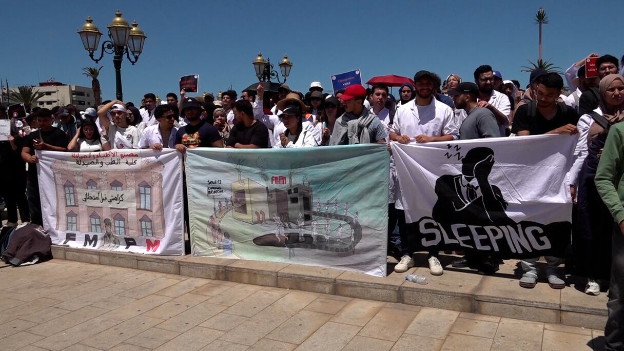 وانطلقت المسيرة من ساحة باب الأحد وشهدت مشاركة مكثفة للطلبة، ورفعوا خلالها لافتات وشعارات، رافضة لجملة من القرارات الأحادية للحكومة، وعلى رأسها الرفع من أعداد الوافدين وتقليص سنوات التكوين.