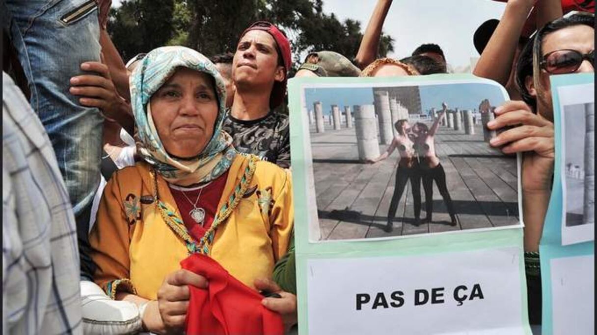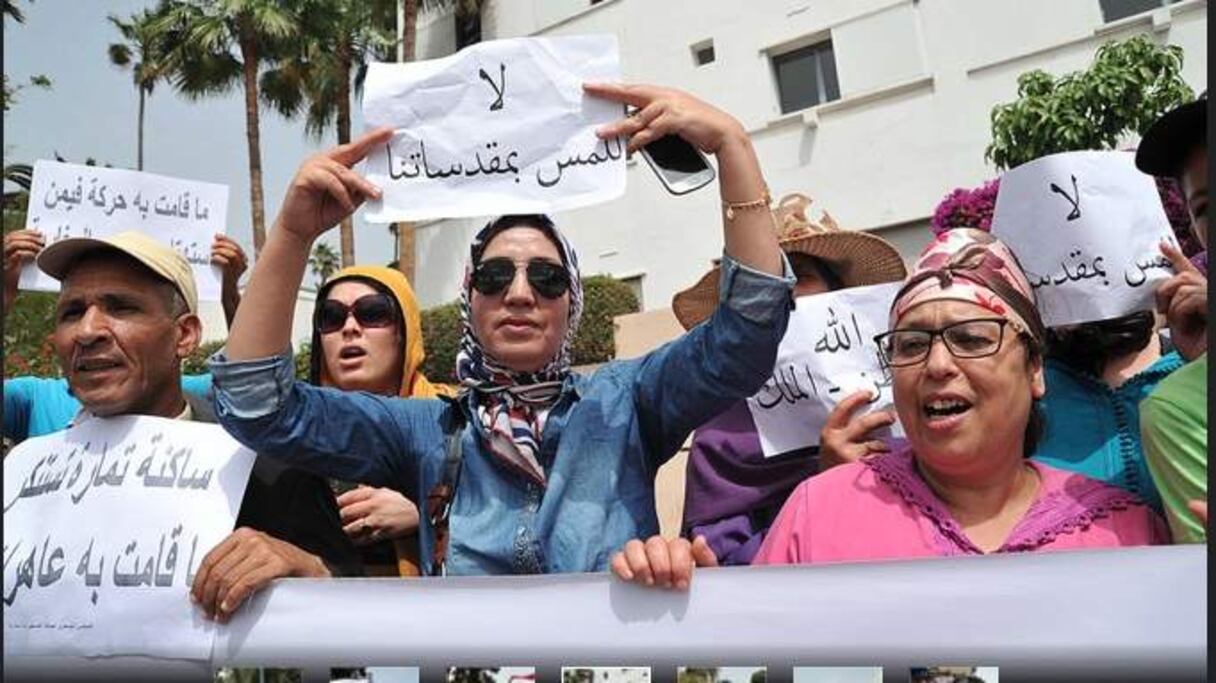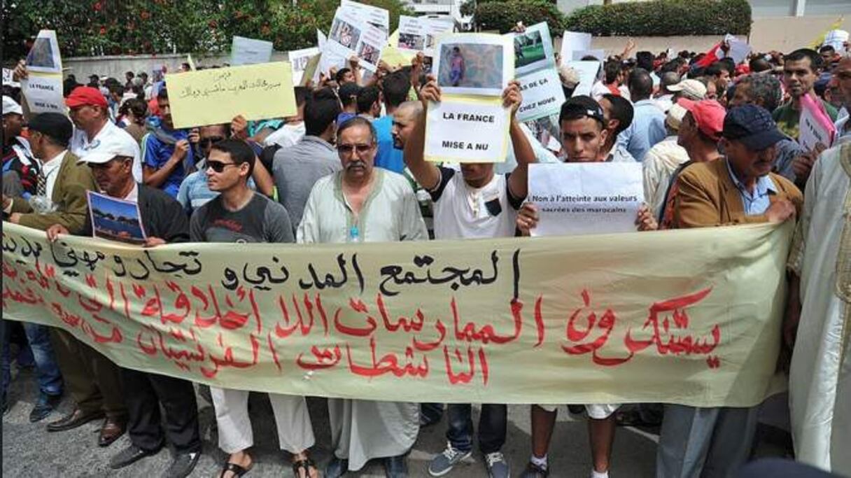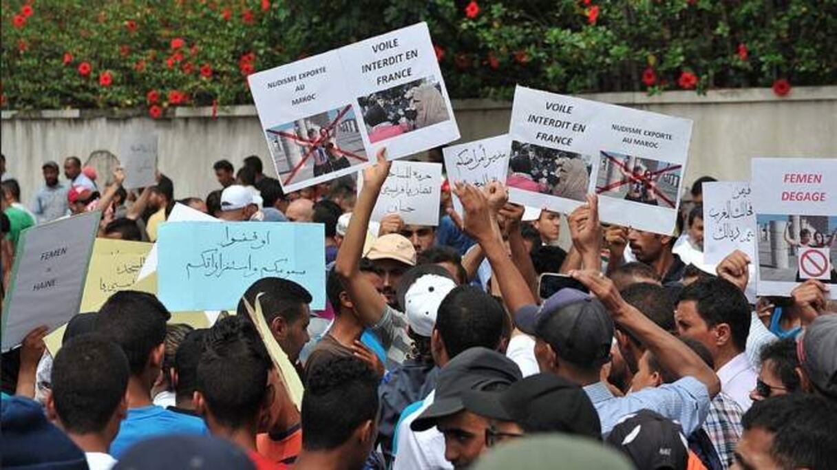 ورفع المحتجون شعارات منددة بالتصرف، الذي أقدمت عليه المواطنتان الفرنسيتان اللتان جرى ترحيلهما إلى بلدهما أول أمس الثلاثاء.