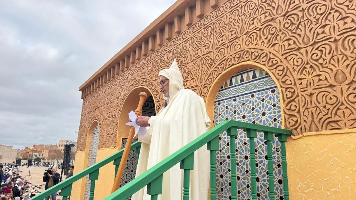 واستهل الإمام الذي أمَّ بالمصلين، خطبته، بحمد الله عز وجل والثناء عليه، ثم الصلاة والسلام على رسول الله صلى الله عليه وسلم، داعيًا إلى تقوى الله واستشعار نعمه جل جلاله على عباده، والتمسك بسنة النبي صلى الله عليه وسلم في يوم العيد وفرحة المسلمين به، مؤكدا في حديثه أن هذه المناسبة الدينية، تأتي بعد إقبال على الطاعة وعكوف على العبادة، مذكّرا بدلالاتها الراسخة وأهميتها في تكريس كل الخصال الحميدة.