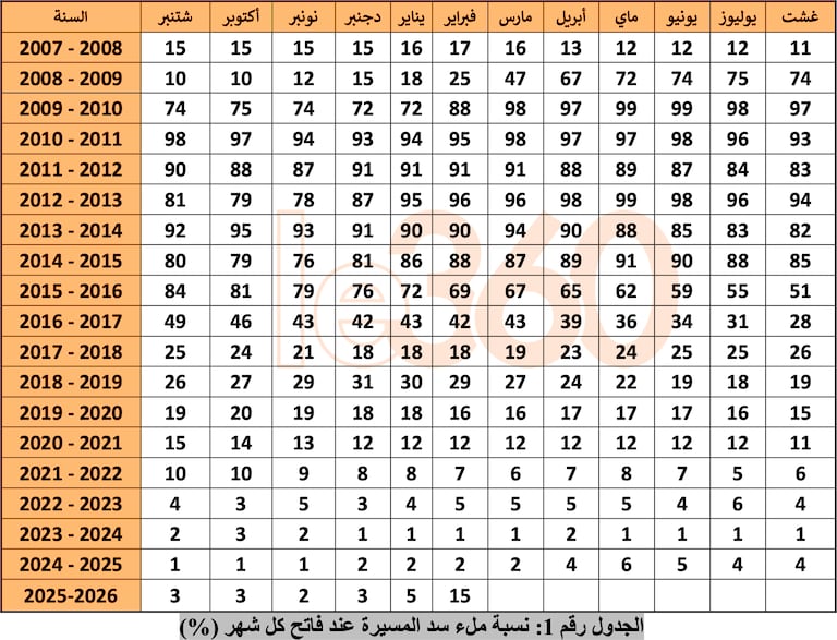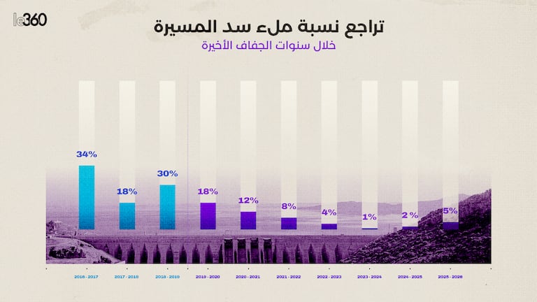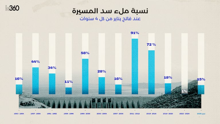 ويوضح جدول تطور نسب ملء سد المسيرة، مسارا مائيا متقلبا يعكس بشكل واضح تأثير التحولات المناخية بالمغرب.