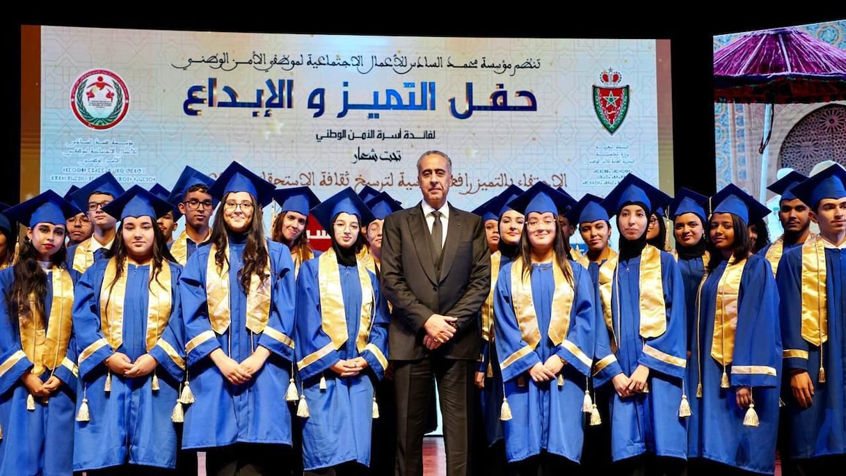 وقد عرف هذا الحفل تكريس التقليد السنوي المتعلق بتكريم أبناء وأيتام أسرة الأمن الوطني، ممن بصموا على نجاح دراسي متميز، وحصلوا على أعلى المعدلات الدراسية في امتحانات الباكالوريا برسم الموسم الدراسي 2025/2024، حيث تم بالمناسبة تسليمهم منحا وجوائز مالية تحفيزية ومشجعة على مواصلة التعليم الجامعي.