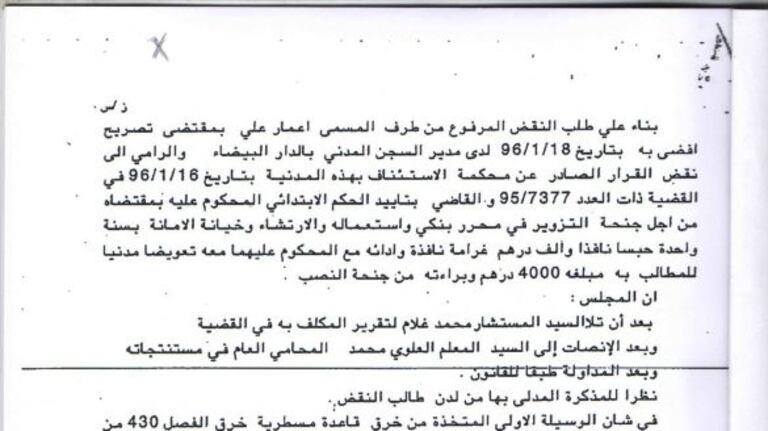 حينها، خلصت النيابة العامة، بأن علي عمار تلقى رشاوى من أجل تزوير تلك الشهادة، بل إن المفتشية البنكية اكتشفت في مكتب علي عمار، العديد من الوثائق المزورة، ومراسلات مشبوهة مع البنك الوطني لباريس، وشهادة أخرى مرسلة إلى البنك التركي، لتحكم المحكمة الابتدائية للدار البيضاء، في يوم 20 شتنبر 1995 على علي عمار وشريكه، بالسجن النافذ سنة ونصف وغرامة 40 ألف درهم، من أجل "الرشوة، والتزوير، وخيانة الأمانة". لتؤيد محكمة الاستئناف في يوم 16 يناير 1996 الحكم الحكم الابتدائي، لكن رغم ذلك، لم يمض علي عمار وقتا طويلا في السجن إذ استفاد من عفو ملكي.إذن، فهذا الشخص الذي يصوب رشاشه نحو الملكية، مدين بحريته للعفو الملكي الذي منحه إياه الحسن الثاني، في تلك الحقبة، كان عصيا على علي عمار ، الادعاء أن قضية الشهادات المزورة كانت مكيدة من المخزن، لسبب بسيط، أنه لم يشرع في ممارسة الصحافة بعد.