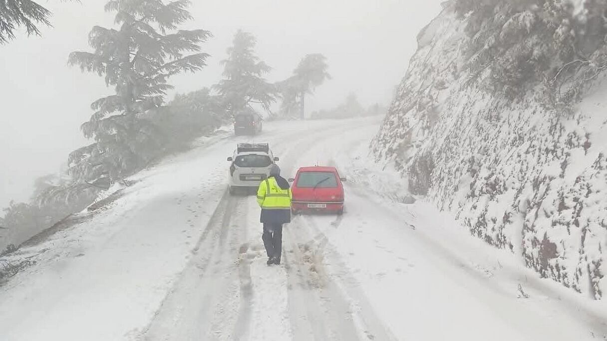 أدت كثافة التساقطات الثلجية إلى انقطاع مؤقت لحركة المرور على الطريق الوطنية رقم 2 الرابطة بين إساكن وباب برد، خاصة عند نقطة باب الصم التابعة لجماعة تمروت. وتواصلت تدخلات السلطات المحلية ومصالح وزارة التجهيز منذ الصباح الباكر، حيث انتشرت كاسحات الثلوج لتأمين الطريق، فيما تولت مصالح الدرك الملكي تنظيم حركة المرور.