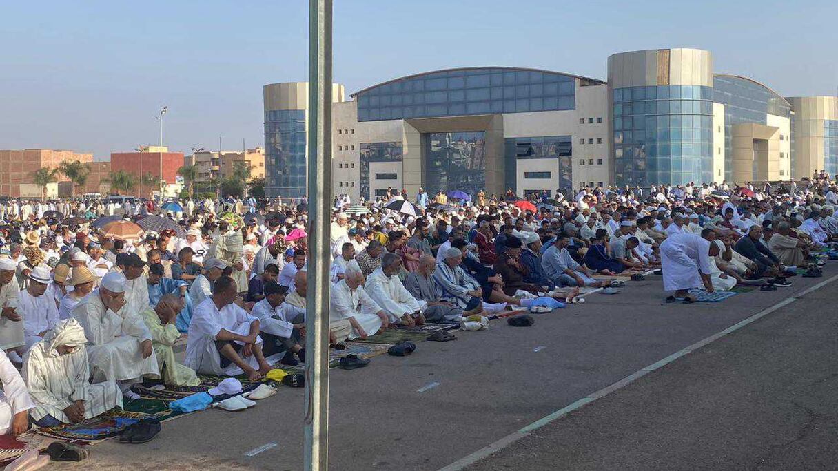 وبمدينة العيون، أدى الآلاف من المصلين والمصليات صلاة عيد الأضحى المبارك، وذلك بساحة المشور السعيد قبالة قصر المؤتمرات، بحضور ما يزيد عن 15 مصل ومصلية.