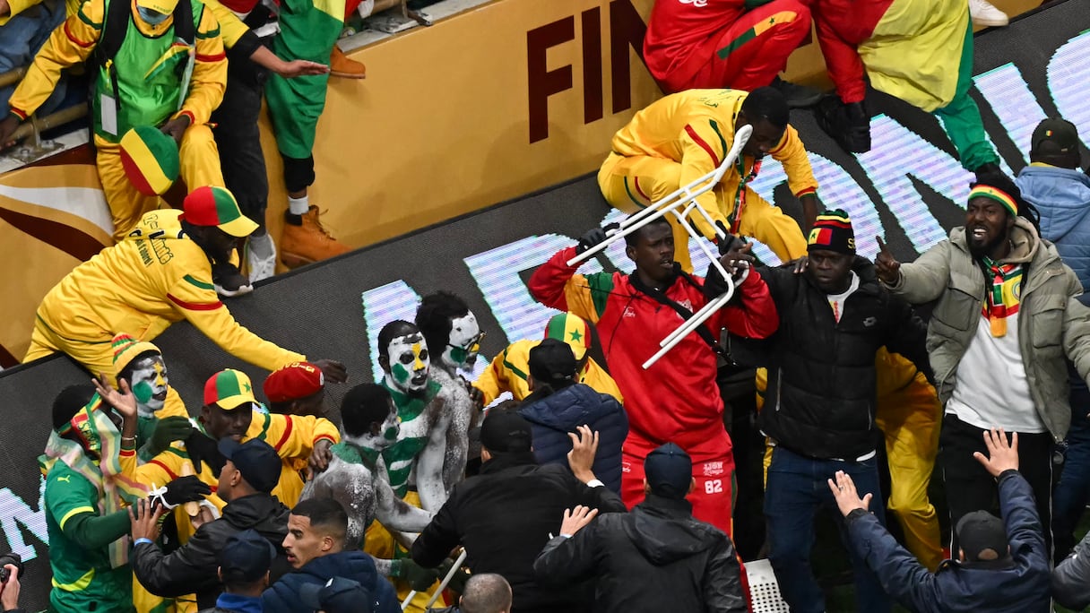 Lors des actes de hooliganisme perpétrés par des supporters sénégalais au stade Moulay Abdellah à Rabat en marge de la finale de la CAN 2025.. AFP