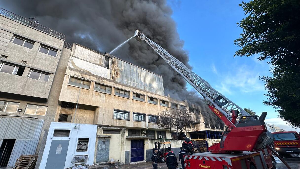 وتواصل عناصر الوقاية المدنية التي حلت بمعداتها بمكان الحريق، عمليات محاصرة ألسنة النيران قبل انتقالها نحو معامل أخرى بالمنطقة الصناعية، بعد أقل من ساعة من اندلاعه وسط المعمل.