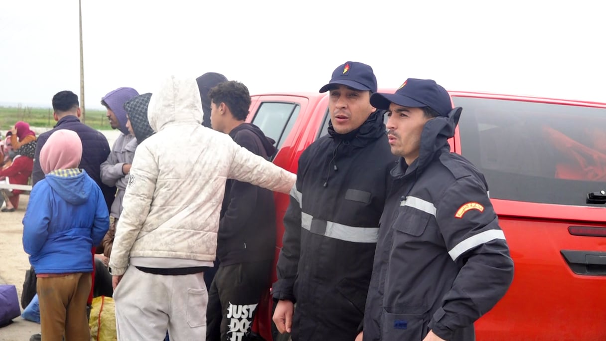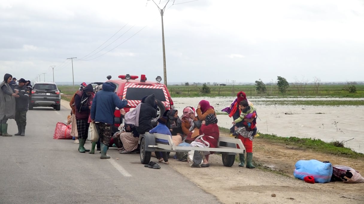 وتحت أمطار غزيرة، سارع عناصر الوقاية المدنية إلى نقل عشرات الفلاحين الذين اضطروا للتخلي عن ممتلكاتهم إلى حافة الطريق. وتم تسخير قوارب «زودياك» ودراجات «جيت سكي» لإيواء الفلاحين المحاصرين في هذه المنطقة المتضررة بشدة. وبينما كانت عمليات الإجلاء تسير بوتيرة متسارعة، اجتاحت المنطقة رياح قوية، مما ينذر باستمرار تقلبات الأحوال الجوية.