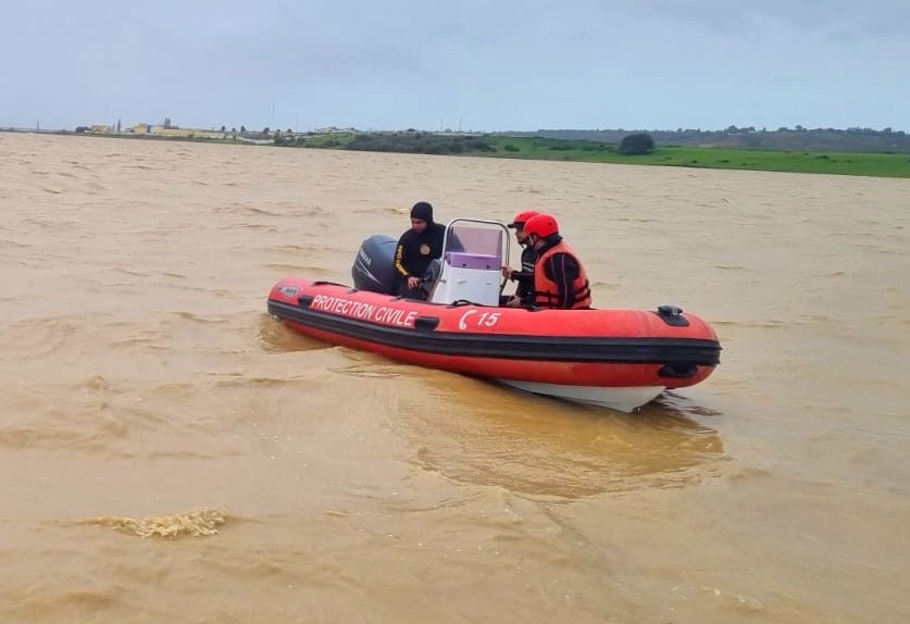 وتحت أمطار غزيرة، سارع عناصر الوقاية المدنية إلى نقل عشرات الفلاحين الذين اضطروا للتخلي عن ممتلكاتهم إلى حافة الطريق. وتم تسخير قوارب «زودياك» ودراجات «جيت سكي» لإيواء الفلاحين المحاصرين في هذه المنطقة المتضررة بشدة. وبينما كانت عمليات الإجلاء تسير بوتيرة متسارعة، اجتاحت المنطقة رياح قوية، مما ينذر باستمرار تقلبات الأحوال الجوية.