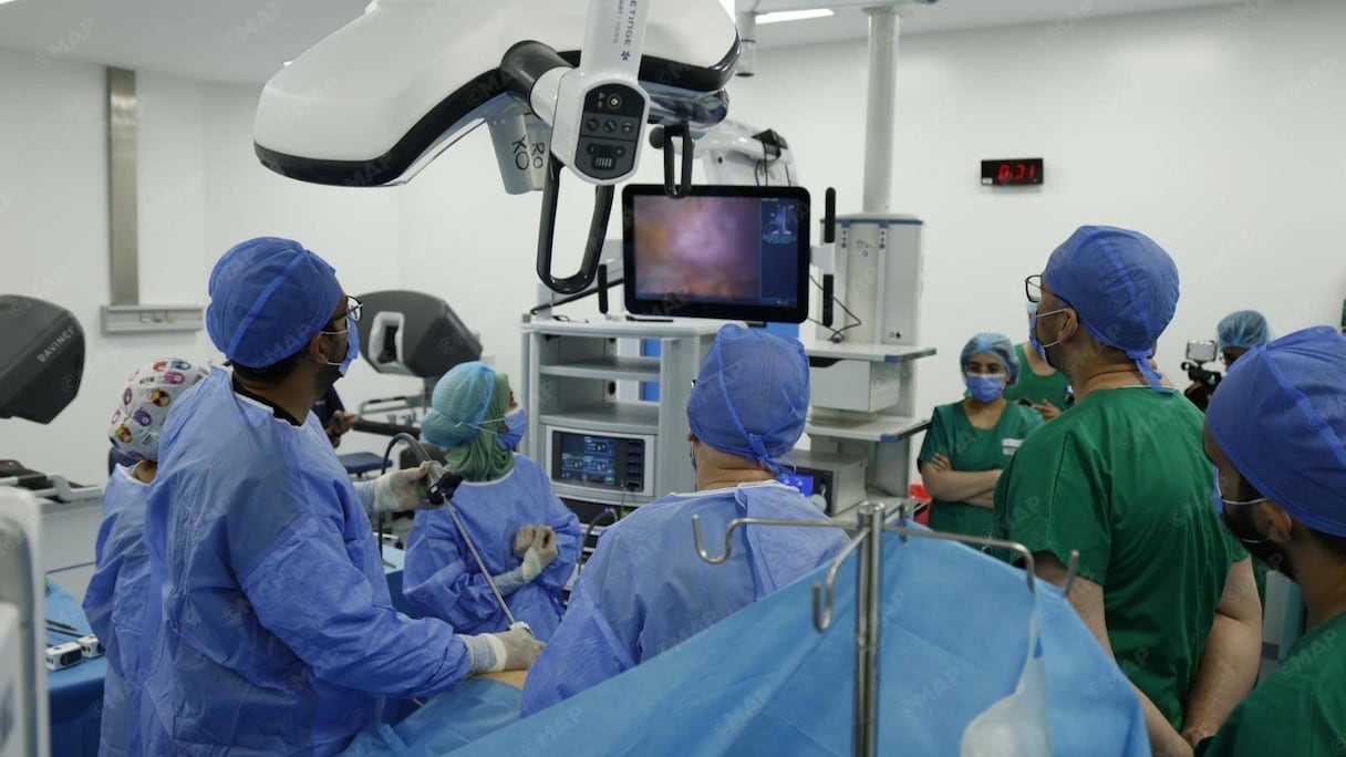 وتعد هذه أول عملية جراحية بواسطة روبوت ت جرى في هذه المؤسسة الاستشفائية، باستخدام نظام يسمح للطبيب بالتحكم في الأدوات عن ب عد، من خلال لوحة تحكم مزودة برؤية ثلاثية الأبعاد عالية الدقة.