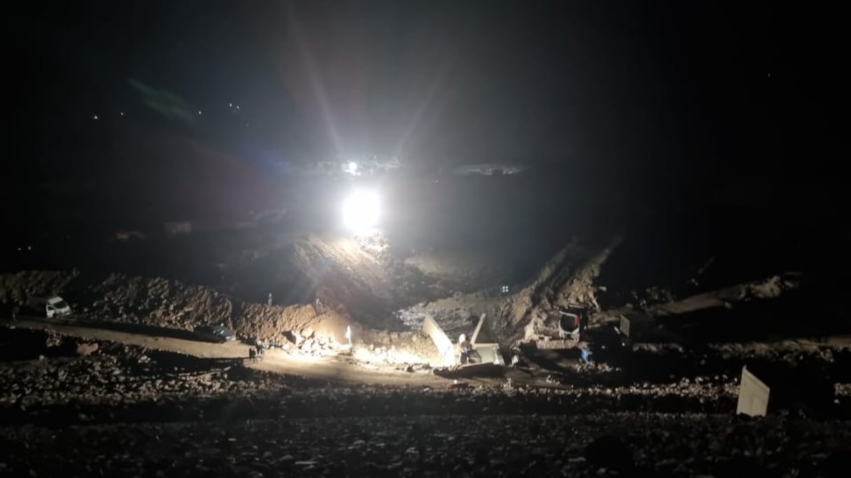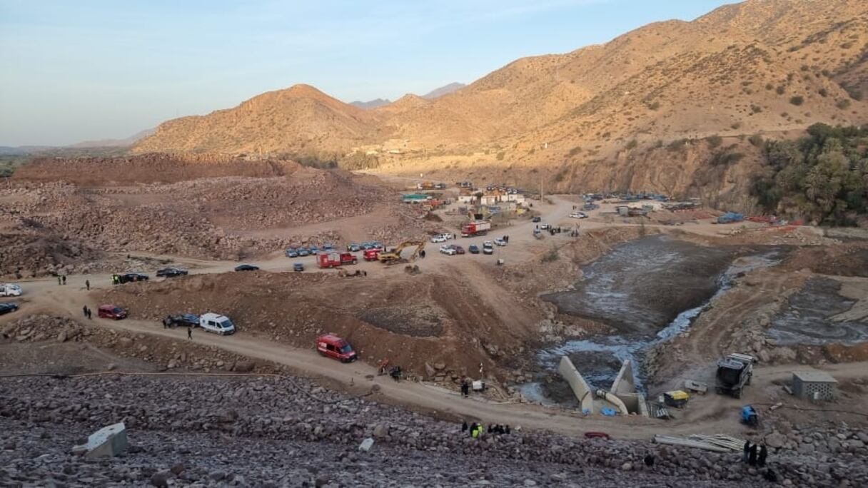 Sur le site de l'explosion qui a eu lieu dimanche 26 janvier, sur le chantier du barrage Mokhtar Soussi. (M.Oubarka/Le360)