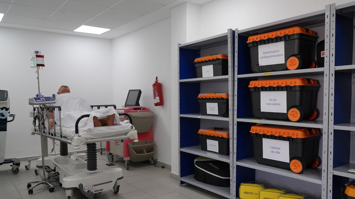 وبالموازاة مع هذه الخدمات الصحية، تتوفر المصلحة على مركز للمحاكاة مخصص لتدريب الأطر الطبية وشبة الطبية على مختلف الإجراءات والتدابير المتعلقة بالتدخلات الاستعجالية التي يمكن القيام بها في حالة الطوارئ، فضلا عن وحدة تنسيق المساعدة الطبية العلاجية « SAMU » المتوفرة عبر الرقم 141، والتي تمكن من التواصل مع طبيب من المستعجلات لشرح الحالة الطبية للمريض، مع إمكانية إرسال سيارة إسعاف مجهزة للتدخل الاستعجالي في حال الحاجة لها.