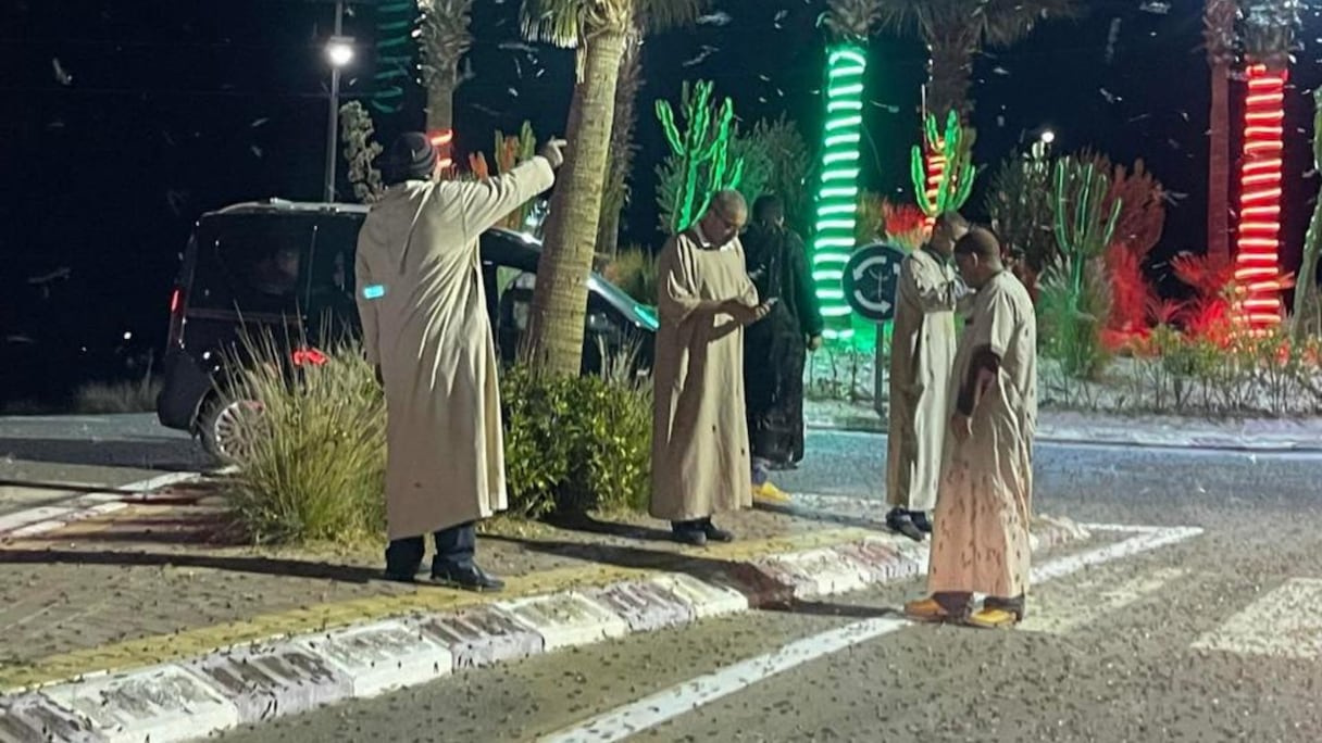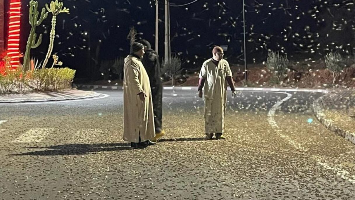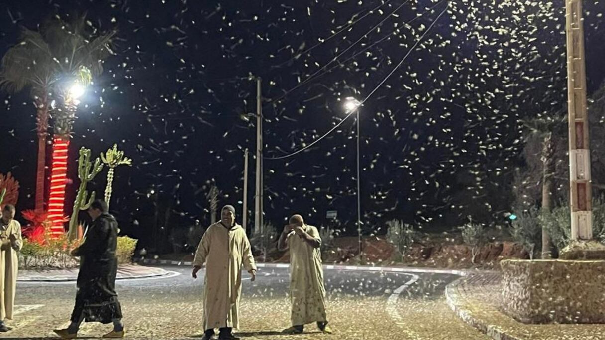 وأكدت جماعة أملن في بلاغ صحفي أن الامر لا يتعلق بأسراب الجراد، بل هي حشرات محلية معتادة، تنجذب إلى مصادر الضوء خلال فترات معينة من السنة.