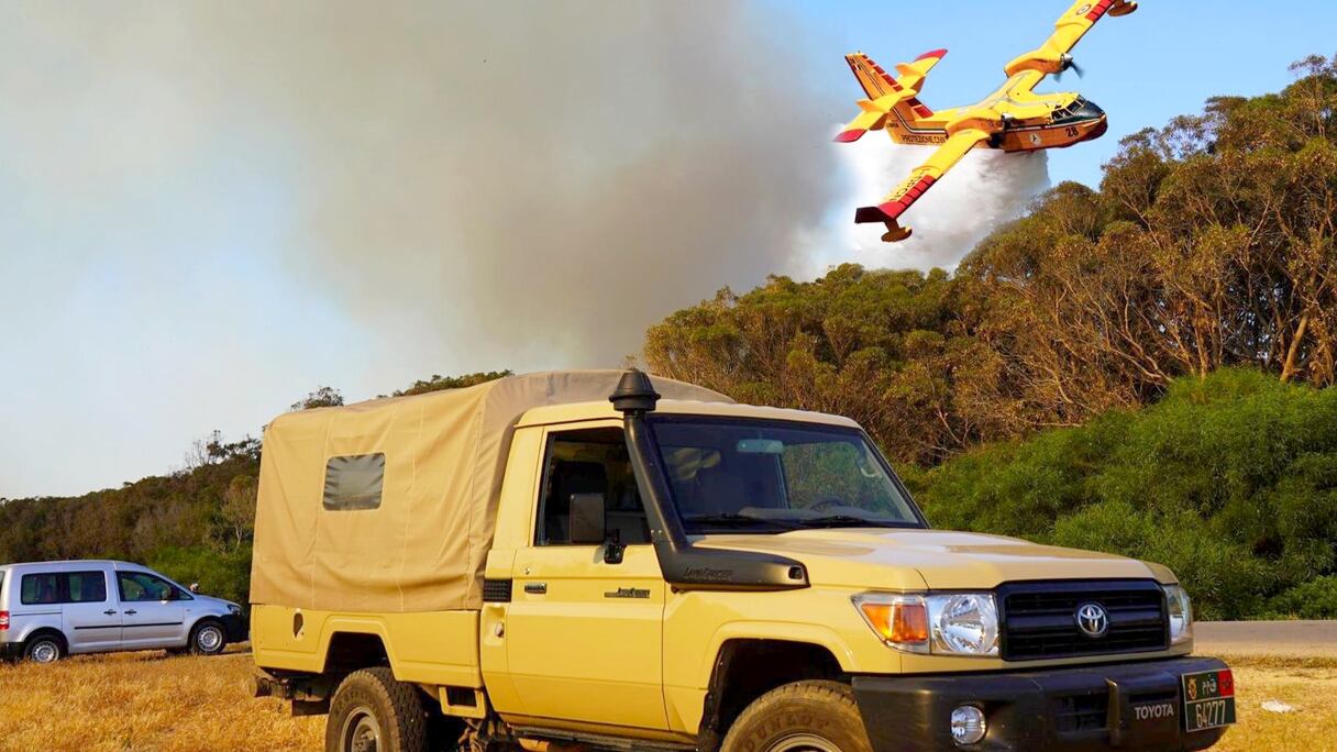 ورغم الرياح الشرقية العاتية، التي تجاوزت سرعتها 84 كيلومتراً في الساعة، تمكنت هذه الطائرات من إيقاف زحف النيران نحو غابة مجاورة قريبة من قنطرة تهدارت بالطريق السيار.