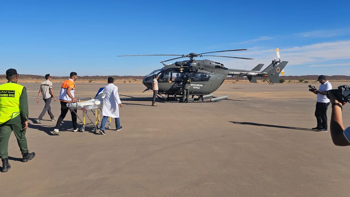 وأفاد المندوب الإقليمي للصحة والحماية الاجتماعية، الحبيب أزناك، في تصريح لموقع Le360، أن المندوبية بعدما تلقت خبر مفاده أن حالتين إنسانيتين في حالة حرجة بالمنطقة المذكورة التي تبعد عن المستشفى الإقليمي بحوالي 45 كيلومترا، الأولى حامل والثانية تعاني من مرض مزمن، حيث تمت الاستعانة بمروحية للدرك الملكي لنقل الحالتين إلى المستشفى.