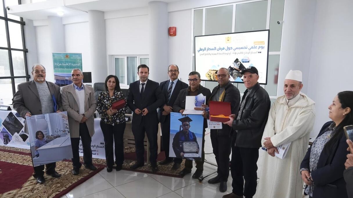 وتميز اللقاء بتكريم أول طبيبة أخصائية في أمراض الرئة بجرادة، وأول طبيب عام تكفل بمرضى السحار الرملي بجرادة.