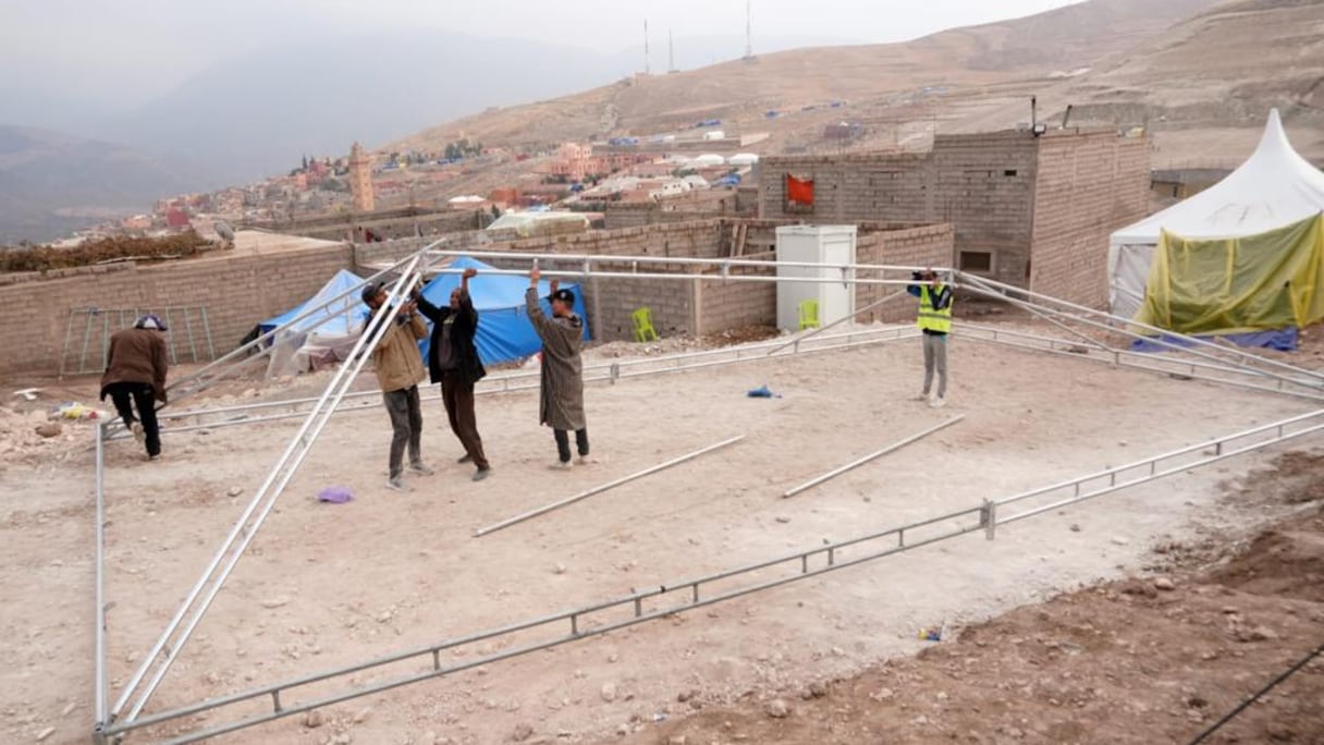من جهة أخرى، جندت مؤسسة محمد الخامس للتضامن مصالحها، بالتعاون مع السلطات المحلية، من أجل توفير خيام مقاومة للمطر لفائدة هؤلاء المتضررين بمختلف المناطق التي ضربها الزلزال.