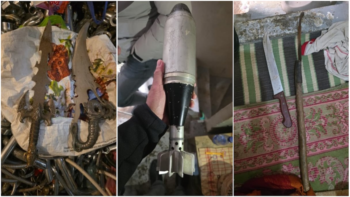 وبحسب المصدر ذاته، أسفرت الأبحاث والتحريات المنجزة على ضوء هذا الشريط عن تشخيص هوية المشتبه فيه، وذلك قبل أن يتم توقيفه بمدينة طنجة والعثور بحوزته على مجسم يشبه القذيفة وخرطوشتين تخصان أسلحة الصيد و5 أسلحة بيضاء، علاوة على جهاز لاسلكي و ثلاث عبوات غاز مسيل للدموع.