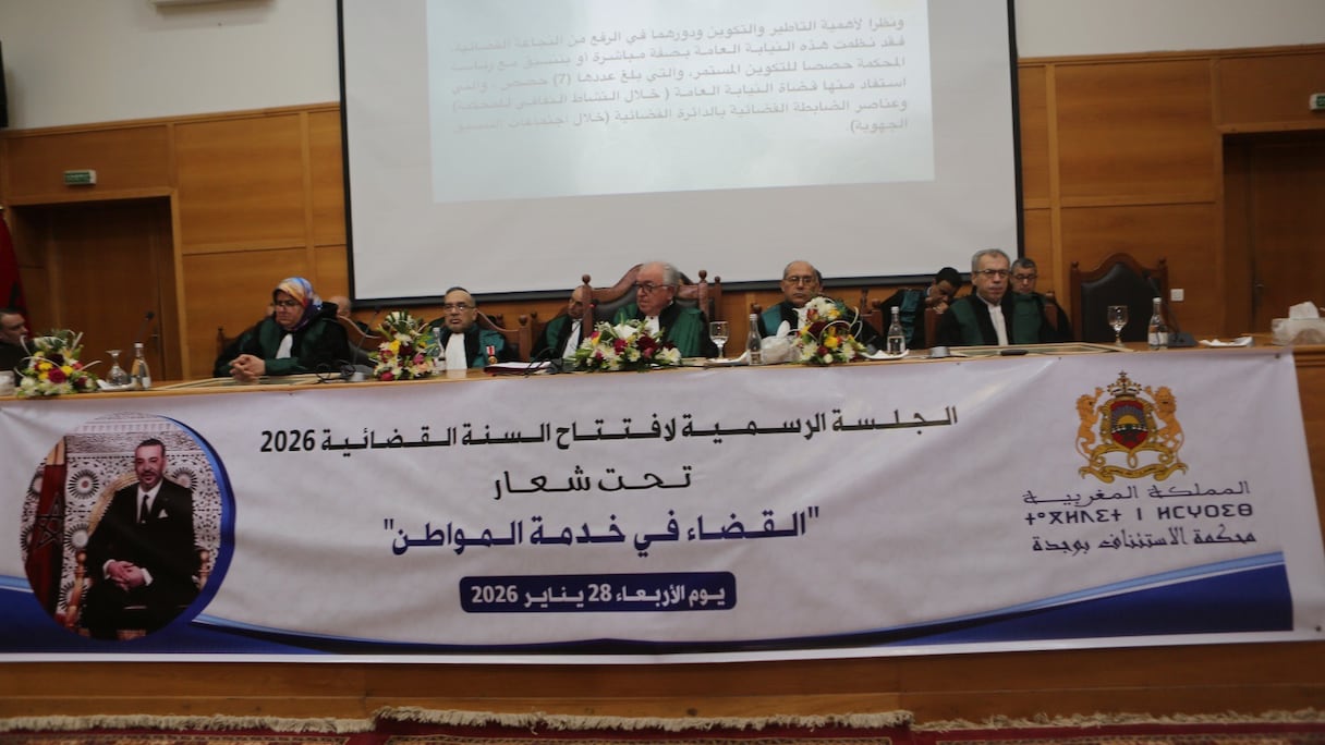 وأبرز الوكيل العام، في افتتاح السنة القضائية الذي أقيم يوم الأربعاء 28 يناير 2026 بقصر العدالة بوجدة، أن النيابة العامة بمحكمة الاستئناف بوجدة، التي تضم نائبة واحدة و11 نائبا، أنجزت خلال سنة 2025 ما مجموعه 70.952 إجراء، شمل مختلف الاختصاصات، بمعدل سنوي بلغ 5.912 إجراء لكل نائب، وهو ما اعتبره إنجازا استثنائيا يعكس نجاعة الأداء ووتيرة العمل المرتفعة.